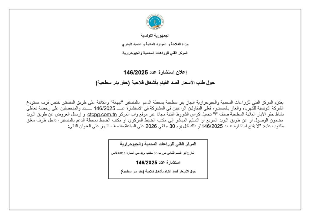 استشارة قصد القيام بأشغال فلاحية (حفر بئر سطحية)